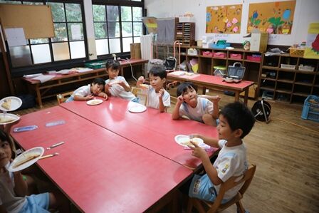 今回は、「運動会頑張ろう!🏃♂️」の意味も込めた食育だったので、オリジナルピック🏴を用意!1文字ずつひらがなが書かれたピックをバラバラに配り、並べ替えると「くみたてがんばろう」になるような仕掛けをしておきました😏解くのに時間がかかるかな?と思っていたのですが、「くみたて!」とすぐに気づき、あっという間に謎解き成功でした👏🏻!飾り付けとして、ホットサンドにピックを刺し、食べました🥪💙