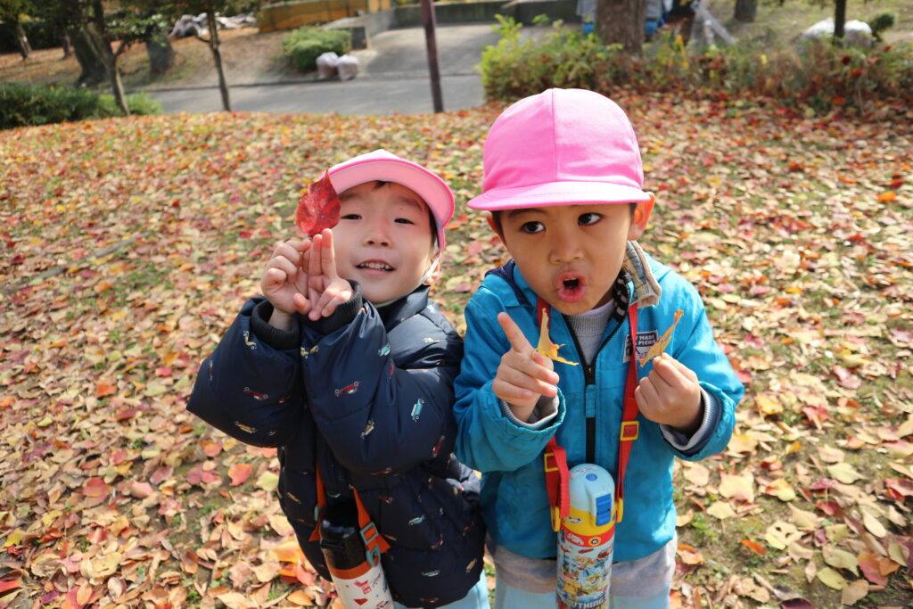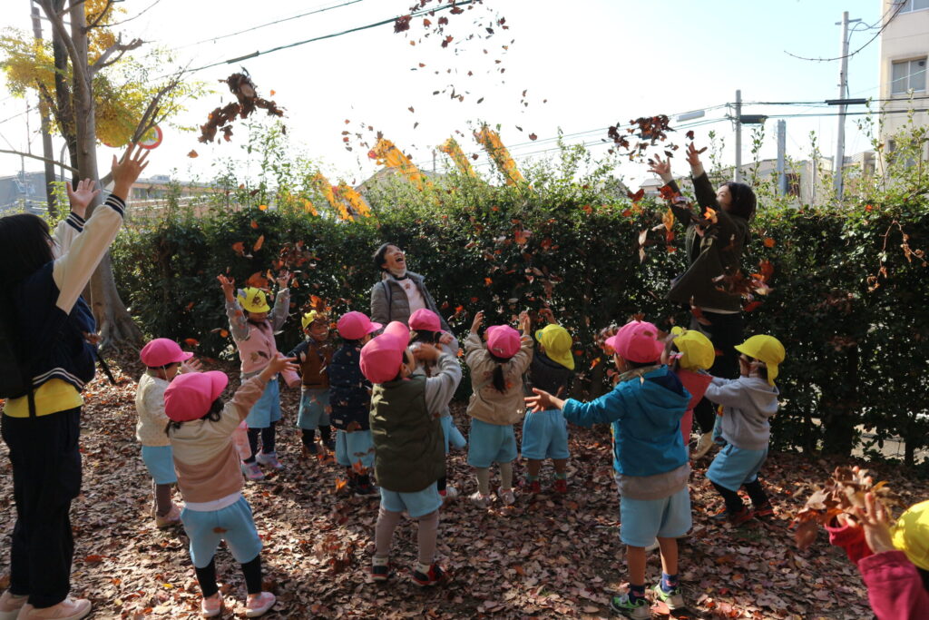 また、落ち葉を沢山集めて3、2、1でお空に飛ばす葉っぱシャワーは何度も何度も繰り返し楽しんでいました🍂
