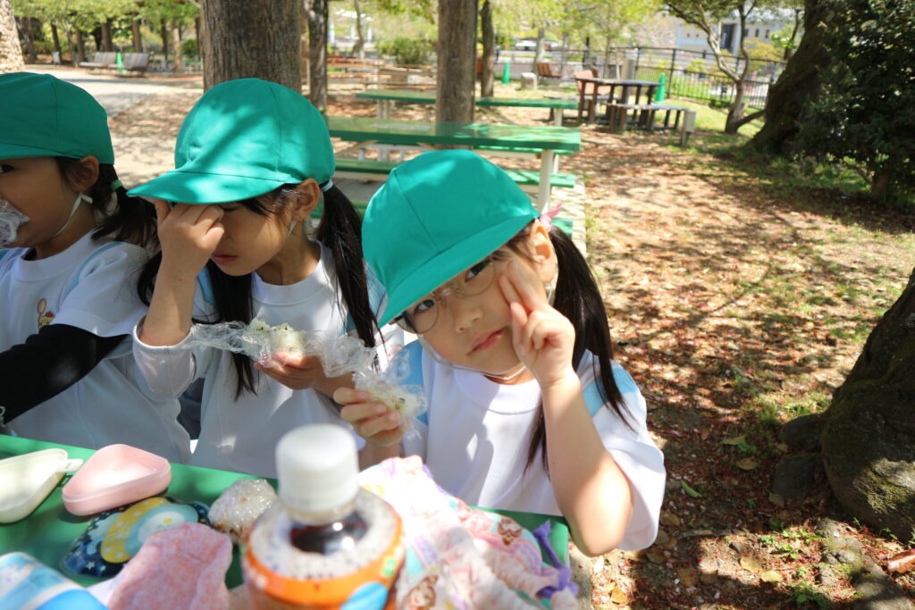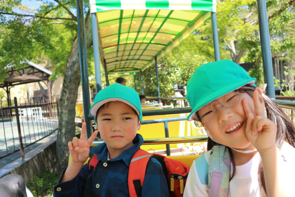 お昼ご飯もみんなでおにぎり🍙を食べ、元気いっぱいになったところで続きを見て回りました。最後にはトロッコ列車にも乗り、笑顔いっぱいな子どもたち😊新たな学年、新しいメンバーで素敵な思い出が作れた1日でした💚💛