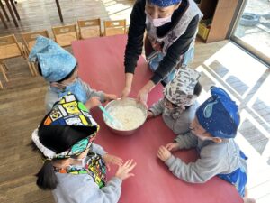 2月25日(火)、米粉のおやきを作りました。今回は①生地を作る②具を入れる③ホットプレートで焼くが大まかな流れです☀️ ①生地を作る米粉・片栗粉・塩・熱湯を2グループに分かれ混ぜます。 いい感じの柔らかさにするのが難しく […]